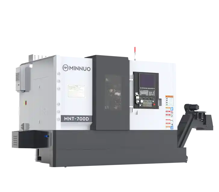 The MN700D is a compact yet powerful cnc turning and milling machine with twin spindles, designed for high-speed, high-accuracy machining of bar-fed or disc-type parts. Its dual-spindle layout enables full front and back machining in a single setup, significantly reducing cycle time and labor.