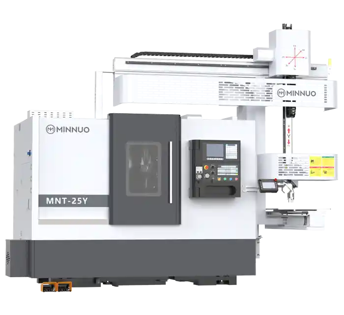 The MNT25Y is a high-performance CNC turning-milling center designed to deliver precision, stability, and versatility in compact part production. Featuring X-axis travel of 135mm, Z-axis of 370mm, and a dedicated Y-axis travel of ±30mm, it allows for multi-axis simultaneous machining, reducing setups and improving part complexity handling.