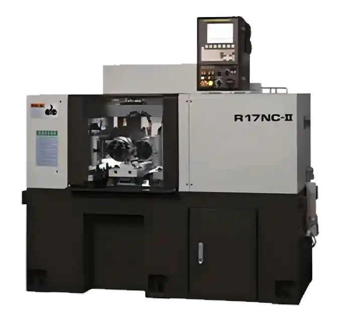 The R17NC-II (Through-feed) is a high-end CNC 3-axis thread rolling machine designed for long-part, uninterrupted thread forming. With a rolling capacity of up to φ45mm in diameter and 4,000mm in length, it brings unmatched precision and durability to production lines that demand high-strength, burr-free thread forms on extended components.